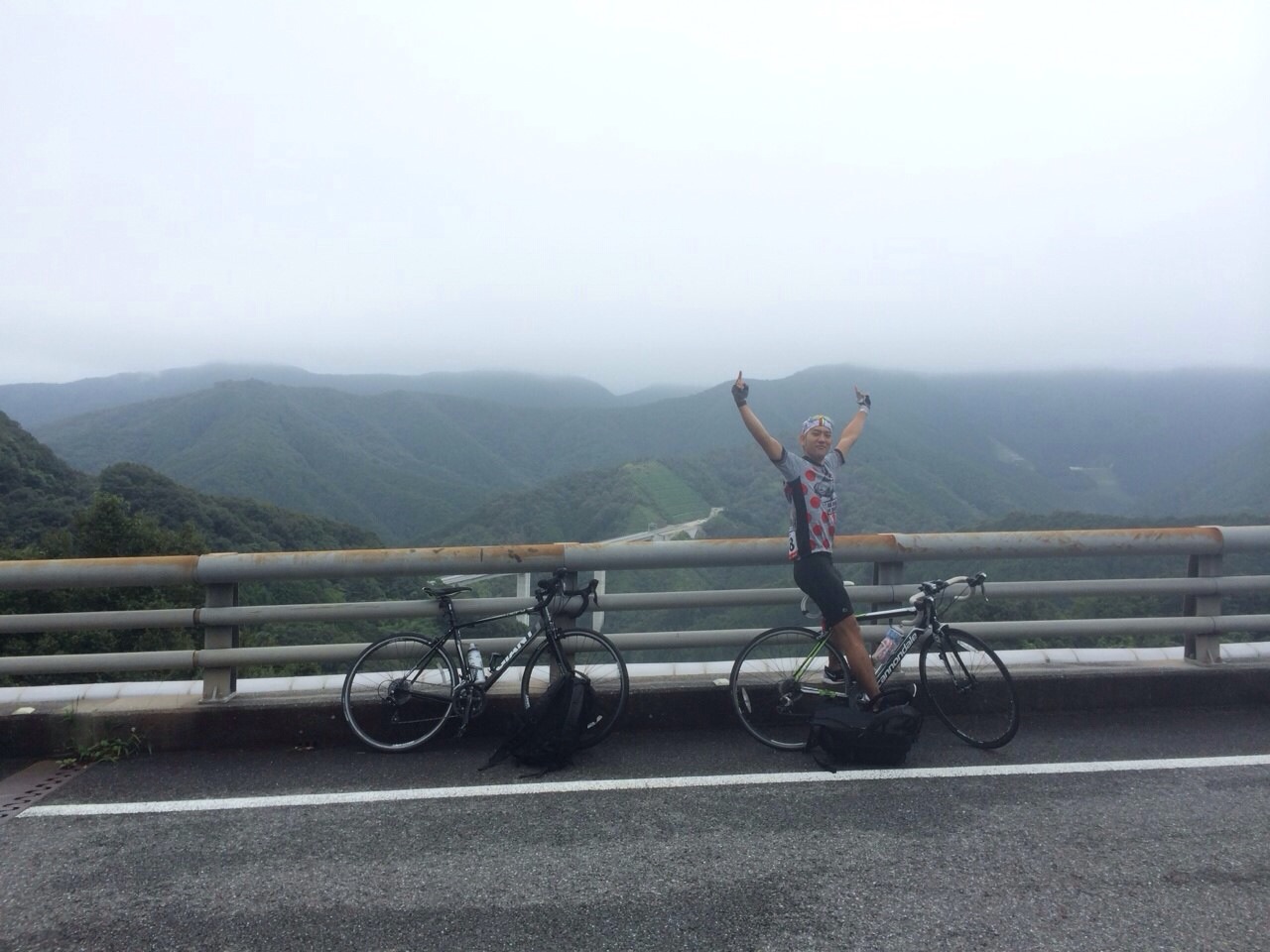 道も平坦で朝からいい滑り出しでした。2日目に比べると、1日の走行距離も110kmほどと短めを予定し余裕をぶっこいていましたが2DのGoogleマップではわからなかったのですが、化け物みたいな峠に出くわしました。前後のギアを最軽量にしてもスピードが全然出ませんでした。結局、急斜面を5kmほどと立ち漕ぎしました。でも頂上付近のそこからの眺めは最高でした。